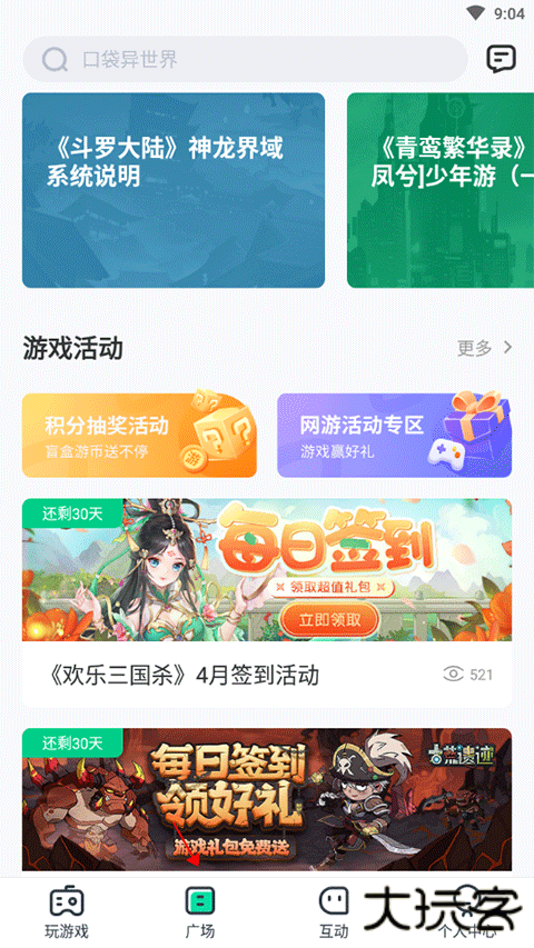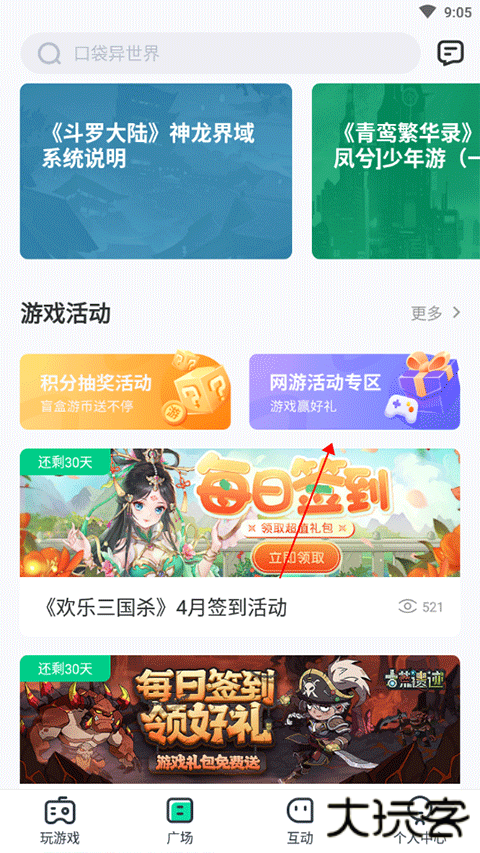 2、在广场页面扫一眼右边,网游活动专区通常就在那儿待着呢,图标可能很明显