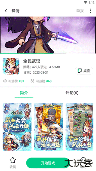 3、这样就跳转到这个游戏的详情介绍页了,页面上有详细介绍和截图哦,同时上面会有关注或添加到桌面的选项