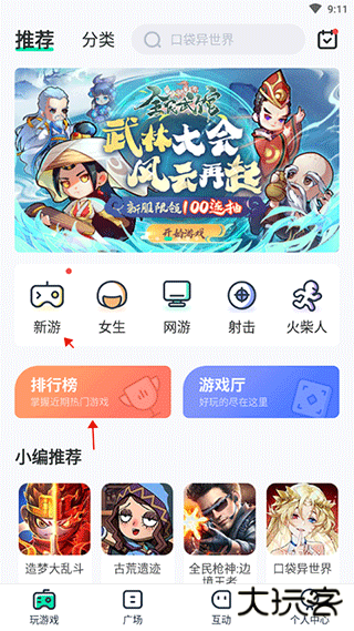 2、在首页或榜单里翻翻选选,看到想玩的游戏名字或者封面就点下去