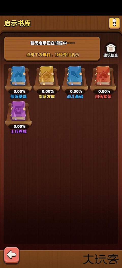 书库里整整齐齐放着五本重要的书:部落基础、部落发展、战斗基础、部落繁荣、士兵养成。想学点新东西?点开一本你需要的书,它会在后台慢慢 “领悟”,这得花点时间。不想等?也可以用钻石直接让它顿悟完成。领悟完了,就能获得书上写的那个厉害效果了。这些效果挺实用的,有的能让战斗更有意思,有的能让你打怪攒经验、赚金币变得更快一点