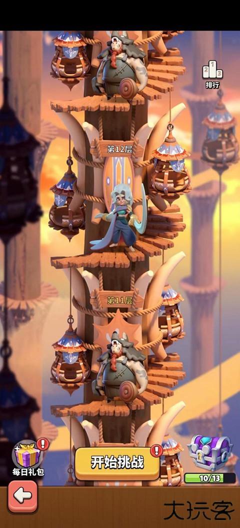 1、想玩试炼之塔?那得先打过 2-10 关卡才行。成功通关后,挑战模块就解锁啦!点开它就能直接进入试炼之塔的界面