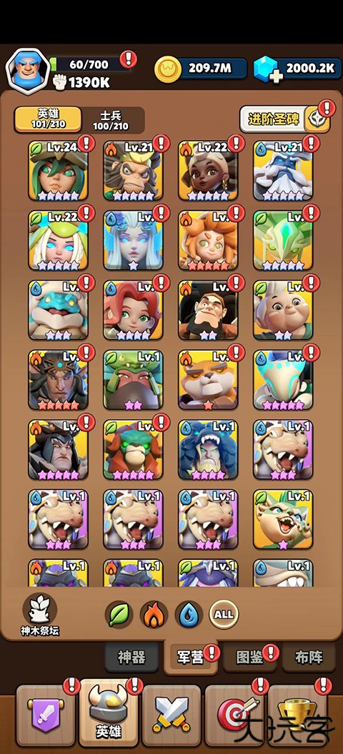 4、想挑战更高层的试炼之塔,自然需要更强的英雄阵容。提升战力的主要途径有这些:去商店抽卡获取强力的新英雄卡片;然后记得去军营强化和升级你的英雄们;别忘记给英雄们装备上战斗打出来的装备,这些都能显著提升属性,帮你组建更强大的队伍去冲击塔顶
