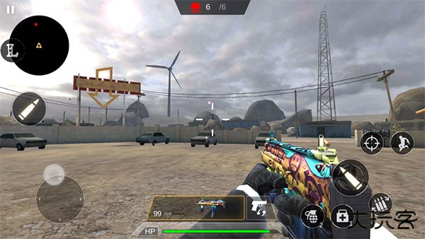 2、按下画面右下角的射击按钮,角色会立即举枪朝目标自动连续攻击