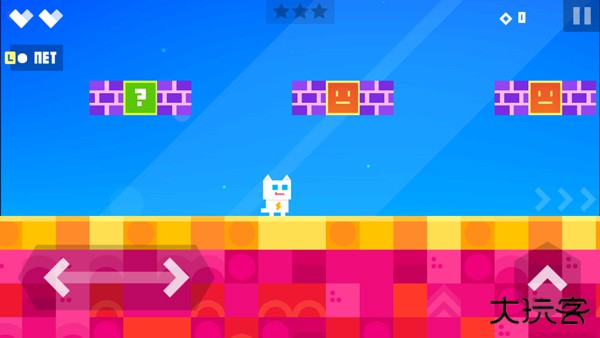 2、跳跃操作: 游戏画面右下方的向上箭头是跳跃键。点它小白就会跳起来。按住左右方向键的同时按跳跃,就能实现向左或者向右的跳跃动作,很灵活