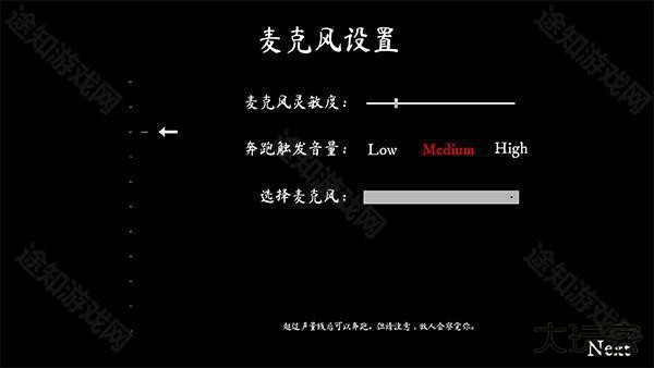 3、再点击【设置】-【麦克风设置】,调整麦克风灵敏度、奔跑触发音量等游戏基础设置;
