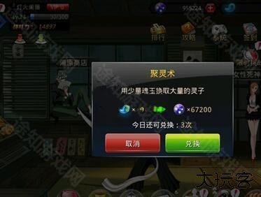 使用魂玉来换取,10魂玉能换得66600灵子,平民玩家每日可兑换3次。