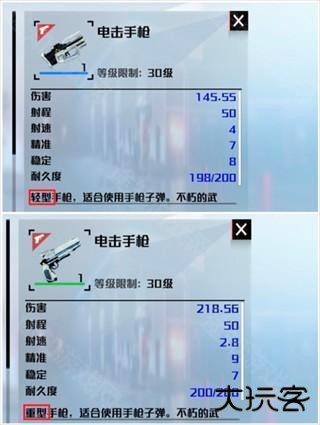 轻型手:射速较快,且能长按连射,但伤害相对重型较低
