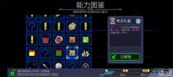 3、将页面翻到最下面,需要50个碳元素解锁礼盒