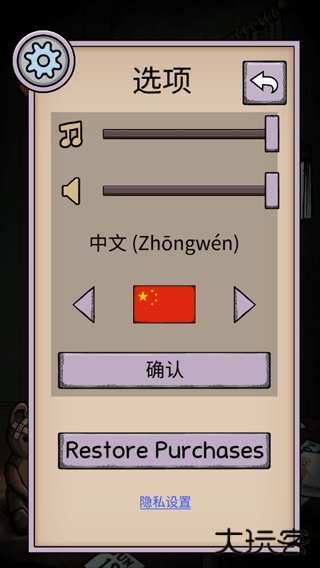 1、启动游戏后进入设置菜单(通常为齿轮图标),将默认语言由英文切换为中文
