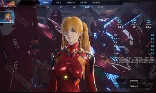 1、首先进入游戏点击“格纳库”找到“驾驶员”选项,点击右下角“容貌调整”。