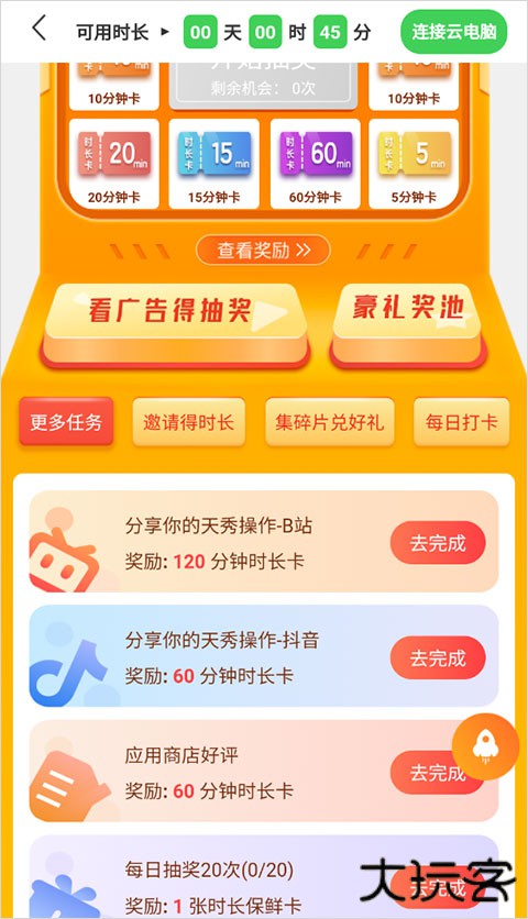 3、完成相应的任务,即可奖励游戏时长