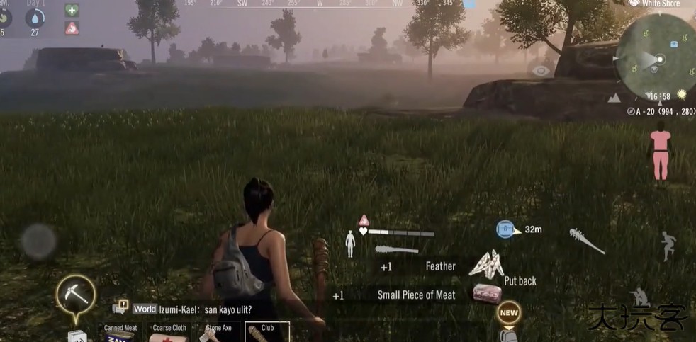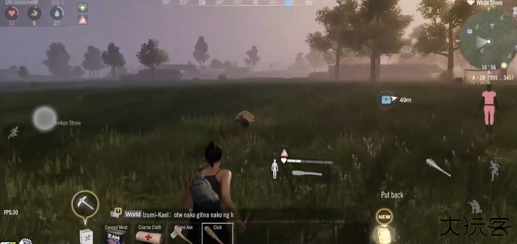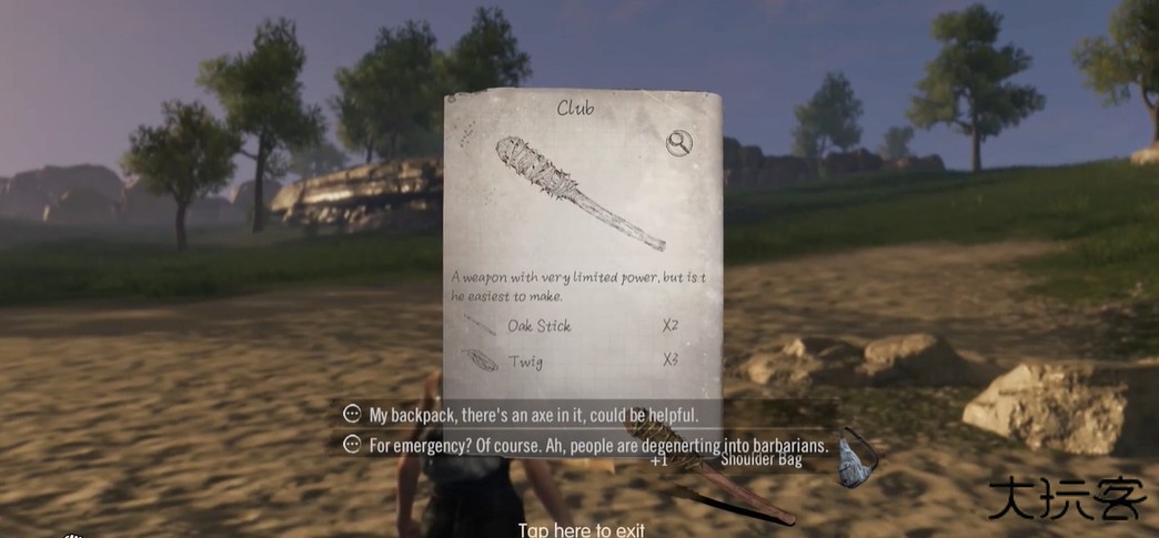 3、玩家可以使用斧子砍树来获得木材,帮助自己制作工具;