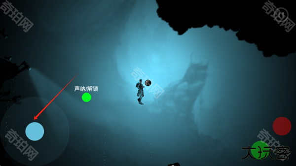 2、绿色按钮表示声呐探索,用于打开箱子和探索地形(可知道附近哪些敌人和哪些东西要捡取)