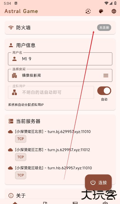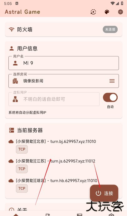 1、打开astral联机软件app(astral game),点击右下角连接。