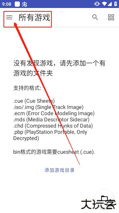 2、使用手柄连接手机设备之后,点击左上方的三条杠按钮