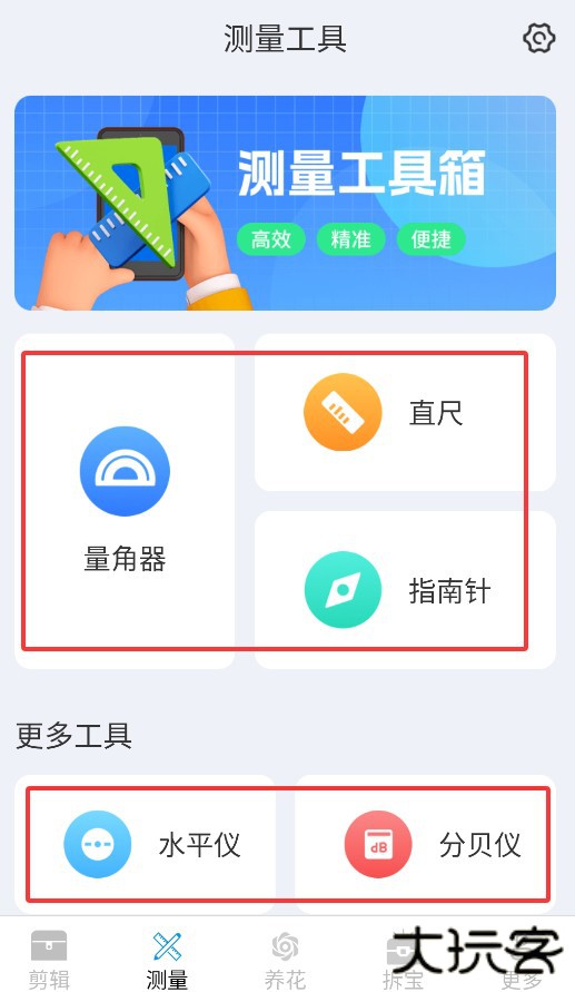 2、应用整合了数十种实用工具,比如尺子测量和手电筒等。