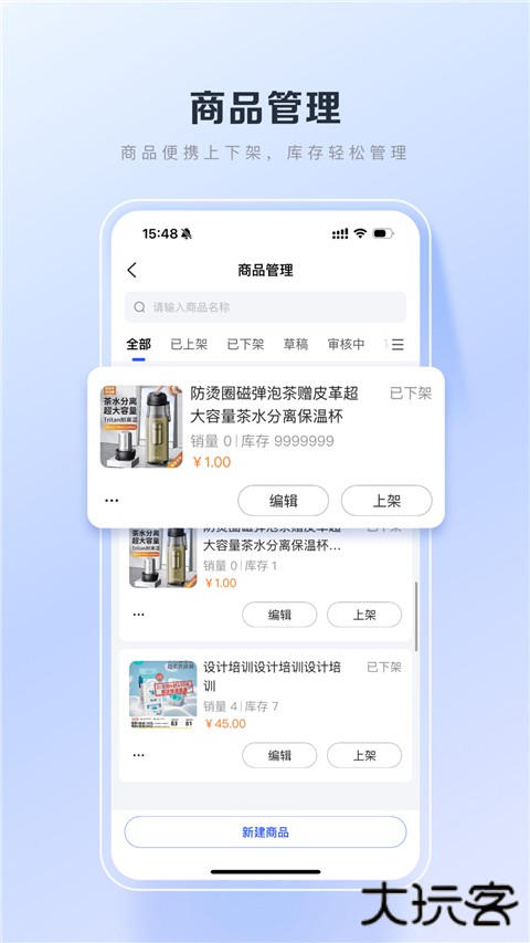 3、商品管理:支持实时编辑商品信息(价格、库存等)、快速上架/下架及爆款打造,覆盖家居、服饰、美妆等多品类。