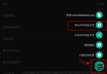 ②可导出APK文件:一键提取并导出安装包,便于备份、测试或进行二次分析。