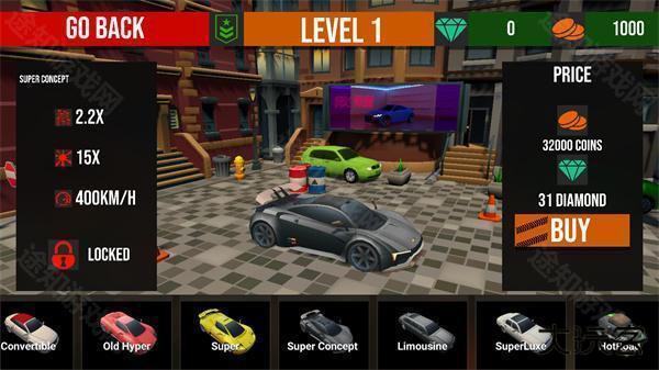 4、完成挑战后会获得许多游戏货币,然后玩家在这里可以用上你们的钻石和硬币了,可以改造喜欢的车,也可以购买车。