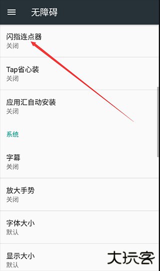 2、在无障碍设置中找到闪指连点器,开启相关权限。