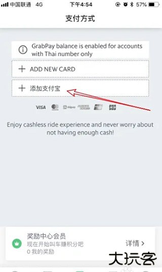 6.这样就成功将grab绑定支付宝,绑定支付宝后使用grab打车等可以直接用支付宝支付