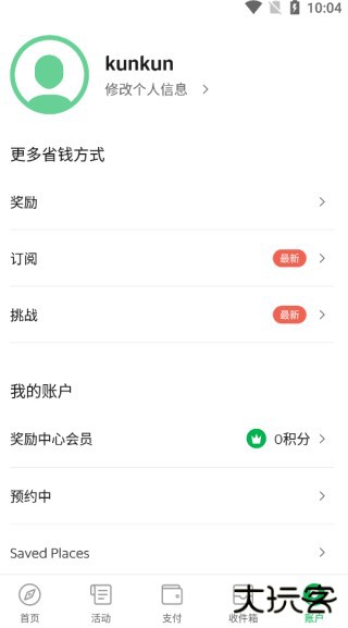 3.输入位置后,即可进入grab首页,点击grab页面下方的支付选项
