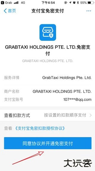 5.转到支付宝免密支付页面后,点击下方的同意协议并开通免密支付选项