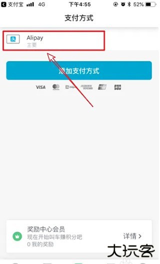4.进入支付方式页面后,可以看到添加支付宝入口,点击即可绑定支付宝