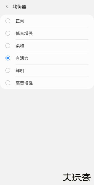4、推荐把均衡器调整为有活力;PS:三星耳机调整到有活力音质更好。