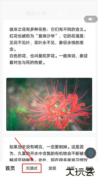 1、打开短知句子app,点击底部的【沉浸式】按钮。