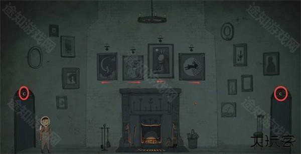 这一关的信息稍微有些隐晦,关键信息藏在中间墙壁的4副图中,首先看两侧门月亮的状态,之后根据图中月亮状态+兔子手指向选择前往哪扇门,四幅图上的蜡烛全部点亮即可通关。