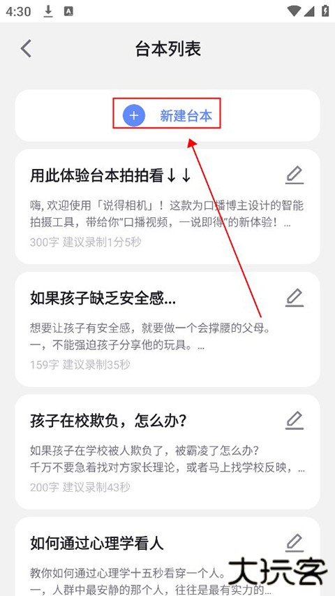 2、在这里可以看到模版台本,用户可以直接使用模版或者点击上方新建台本。