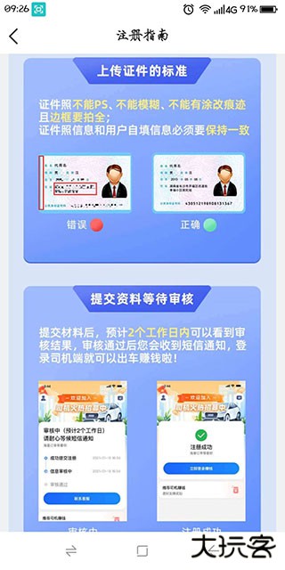 提交资料后,预计2个工作日内可以看到审核结果,审核通过后您会收到短信通知,登陆司机端就可以出车赚钱啦!