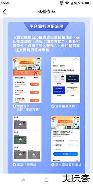 下载搭顺出行司机端app或通过招募链接注册-确认接单城市-选择“加盟方式”-查看招募条件-点击“加入赚钱”上传资料-提交资料后等待审核