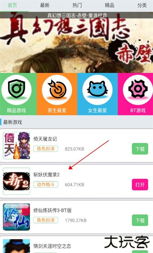 2、点击任意游戏的封面或名称位置,进入详情页面,然后点击右上角菜单图标