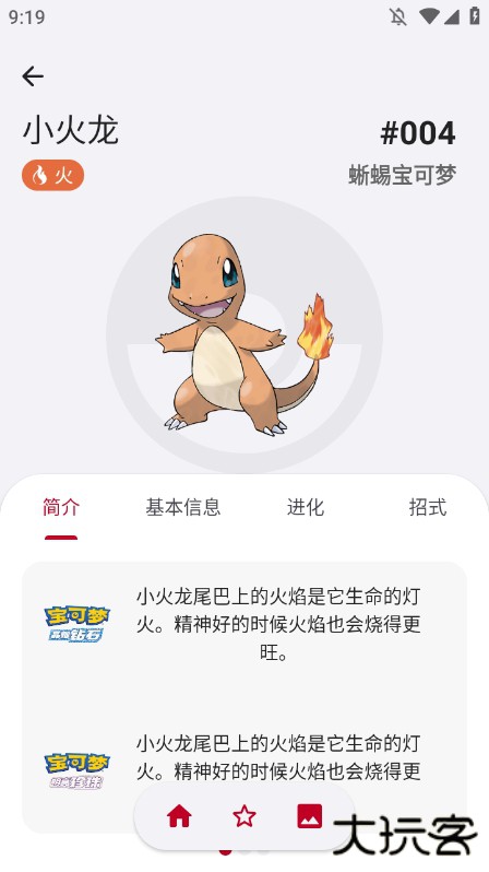 2、进入详情页后,我们可以查看有关小火龙的所有信息;