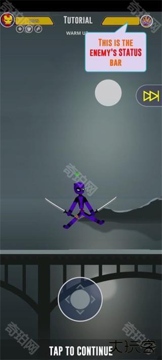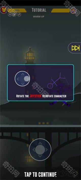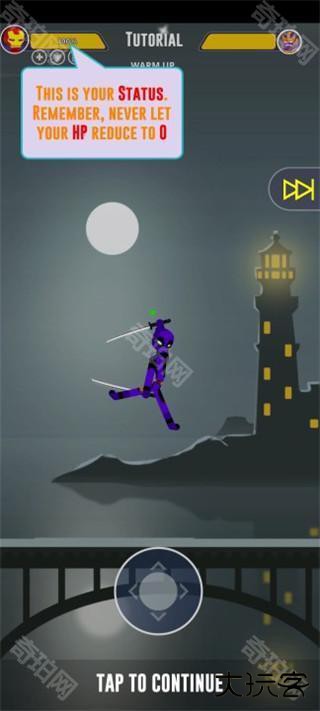1、下载进入火柴人之战超级影子官方版,通过滑动屏幕的方向键来控制角色移动;