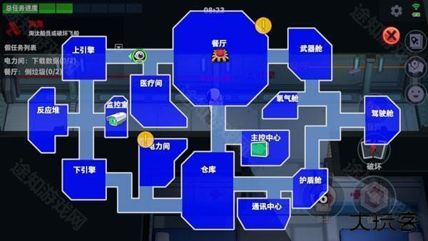 游戏中船员可以通过完成所有的任务获得游戏的胜利,每个人的任务内容略有区别,有的任务也需要合作进行,可以根据地图上的指示,前往即可,任务的形式都很简单,就是一些点点点的操作,有一点点英文基础即可。需要注意的是尽量避免单独行动,这样被K.O了都没有目击证人。