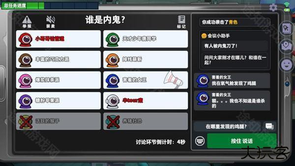 8、玩家可选择发言,以及投票表决谁是内鬼;