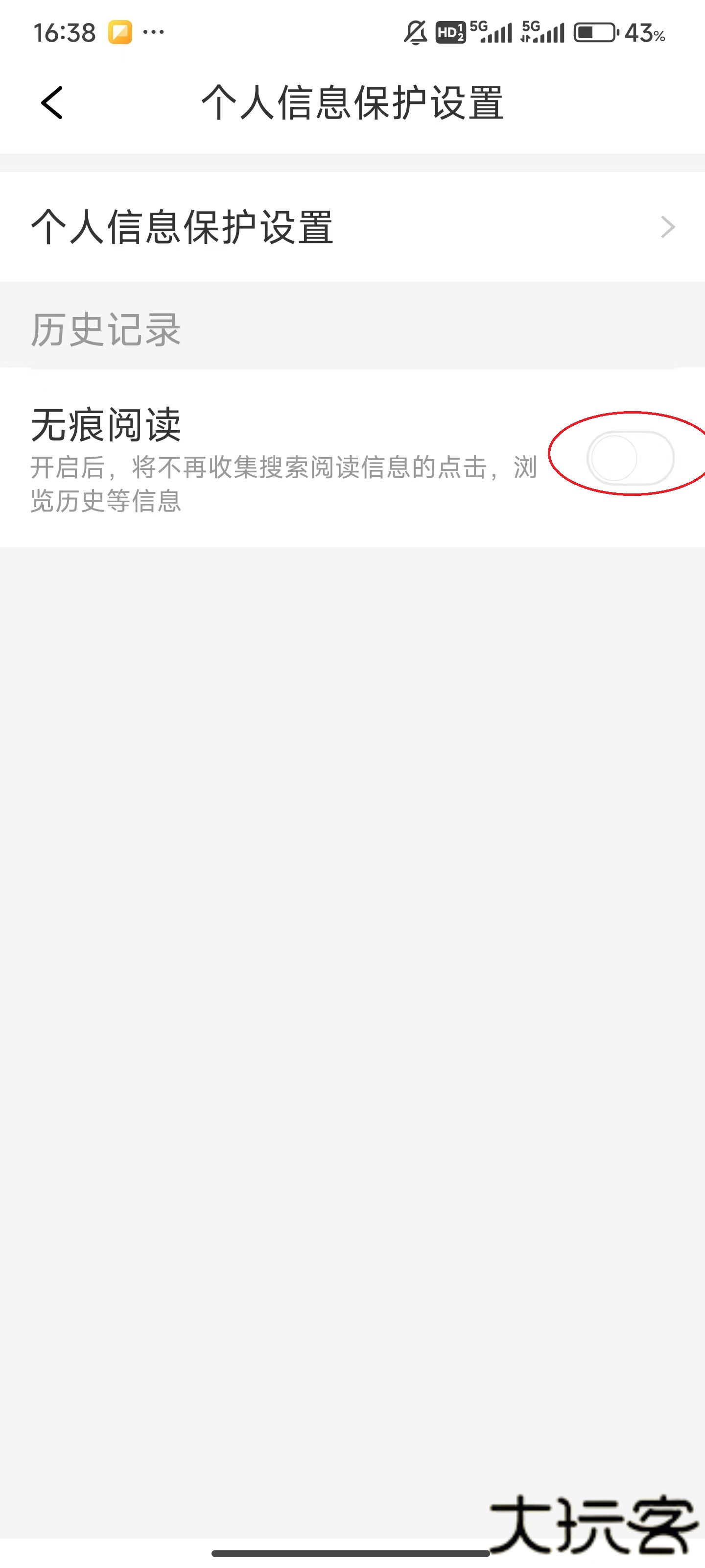 3、个人信息保护设置。
