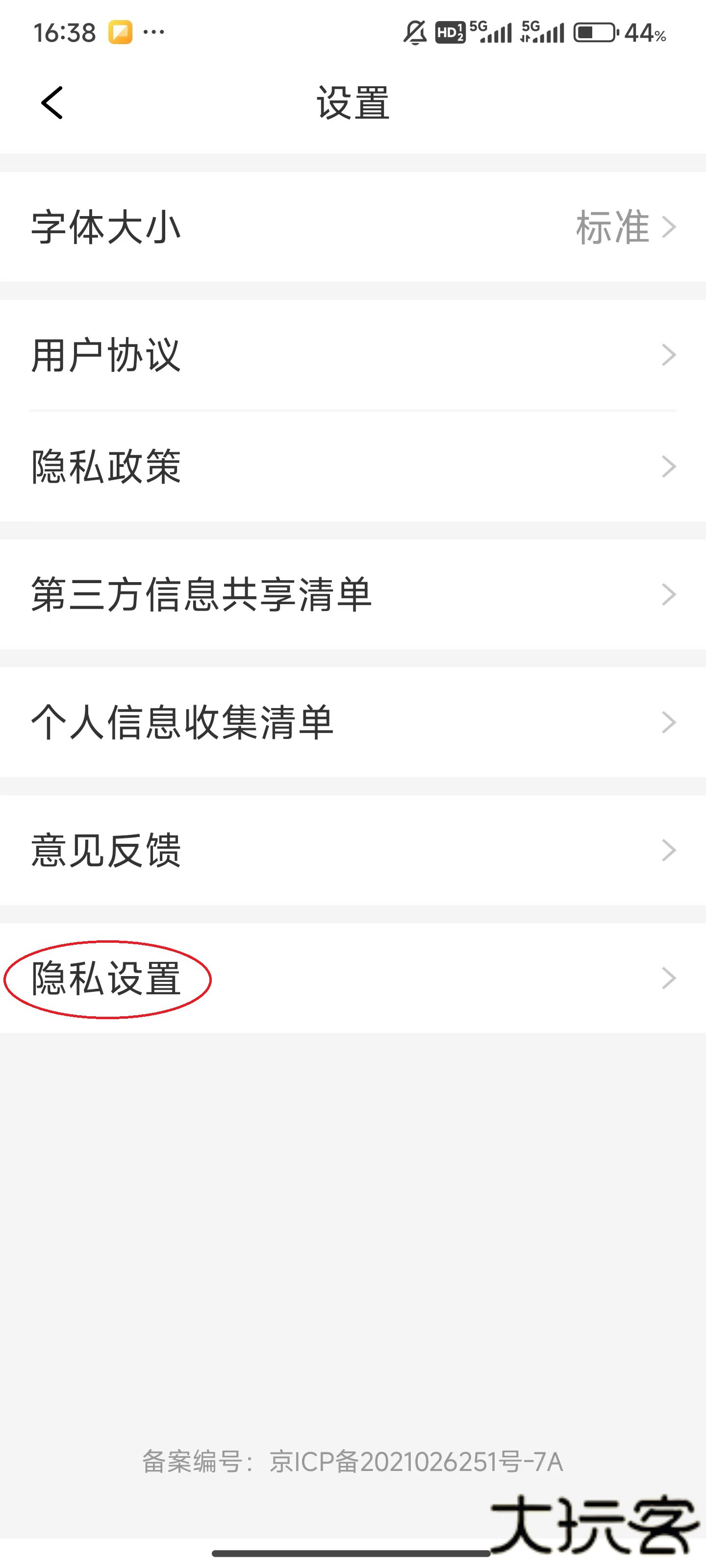 2、点击下方的【隐私设置】。