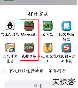 4、有时候部分手机系统自带的浏览器可以直接选择打开MOD模组运行环境,我们选择我的世界游戏。
