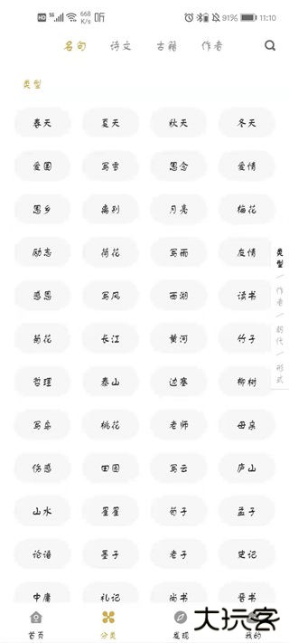 2、点击分类,用户可以根据需求点击古诗类型