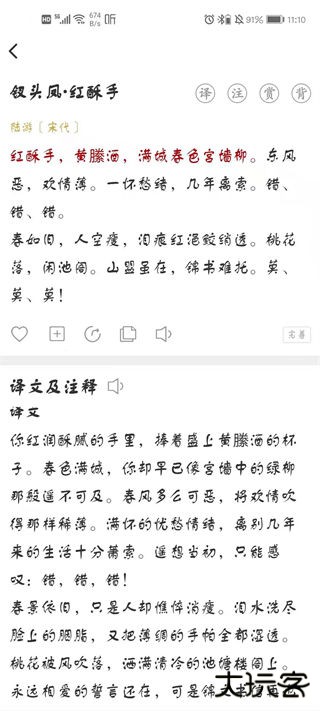 1、详情页内容详尽,支持同步查看注解,译文和赏析