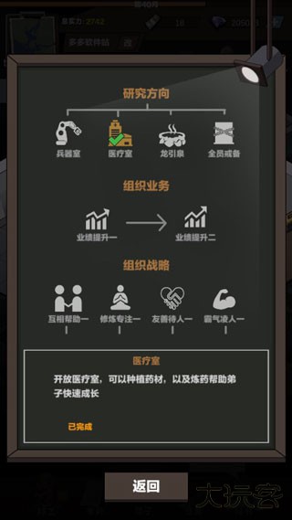 功法,功法决定了您的弟子能提升到多少的境界,如果功法室研究得慢,那么您的弟子整体实力都会提不上去。