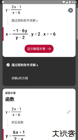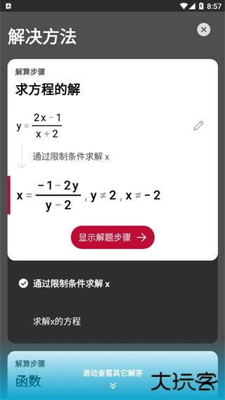 2、扫描数学题后,结果会出现在屏幕底部。轻按“显示解决步骤”按钮以查看单个更详细的步骤。