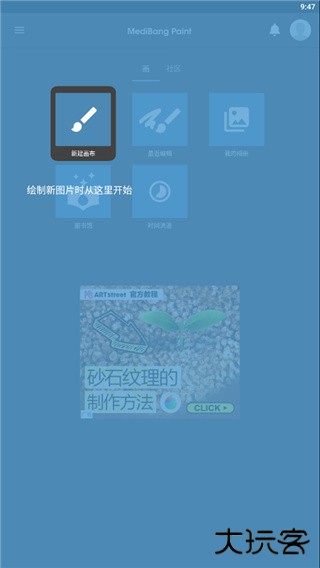 1、绘制图片前需要先创建画布,所有新作品都从这里开始。