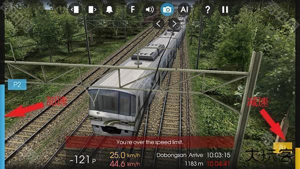 玩家将右边的黄色减速条拉为0,将左边加速条拉为1~5档都可以,列车就会开动啦,到达目的地之后需要停在标准线之内才能打开车门接送乘客,注意不要错过站台了哟!