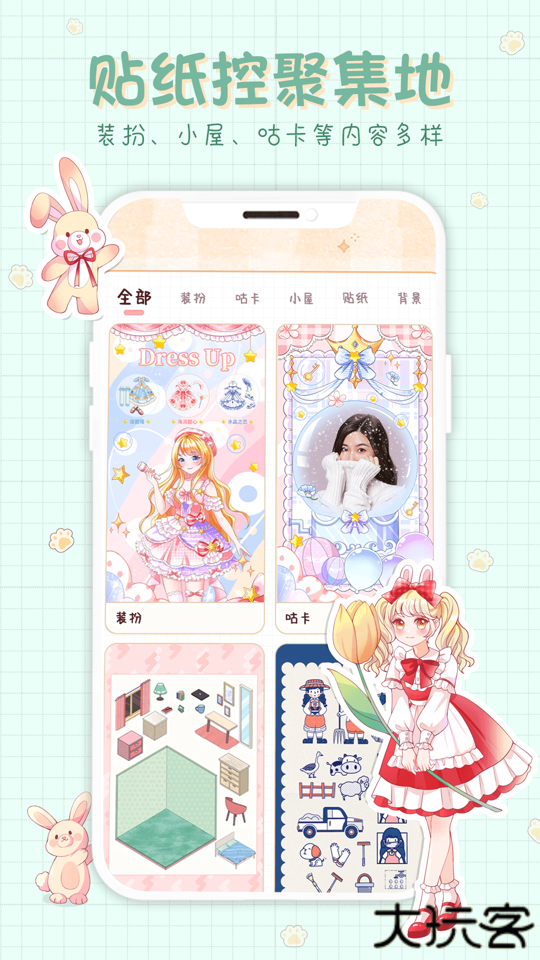 3、我们提供超全的贴纸素材库,美少女贴纸、12星座贴纸、公主房屋贴纸、仙气古风贴纸等内容应有尽有,还有丰富的咕卡贴纸、边框、模板,万物皆可咕~你可以随心DIY设计出专属的手账本~