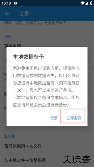 注:应用每日会自动为用户进行一次本地数据备份,避免用户误删应用、误清除应用数据造成数据丢失。
